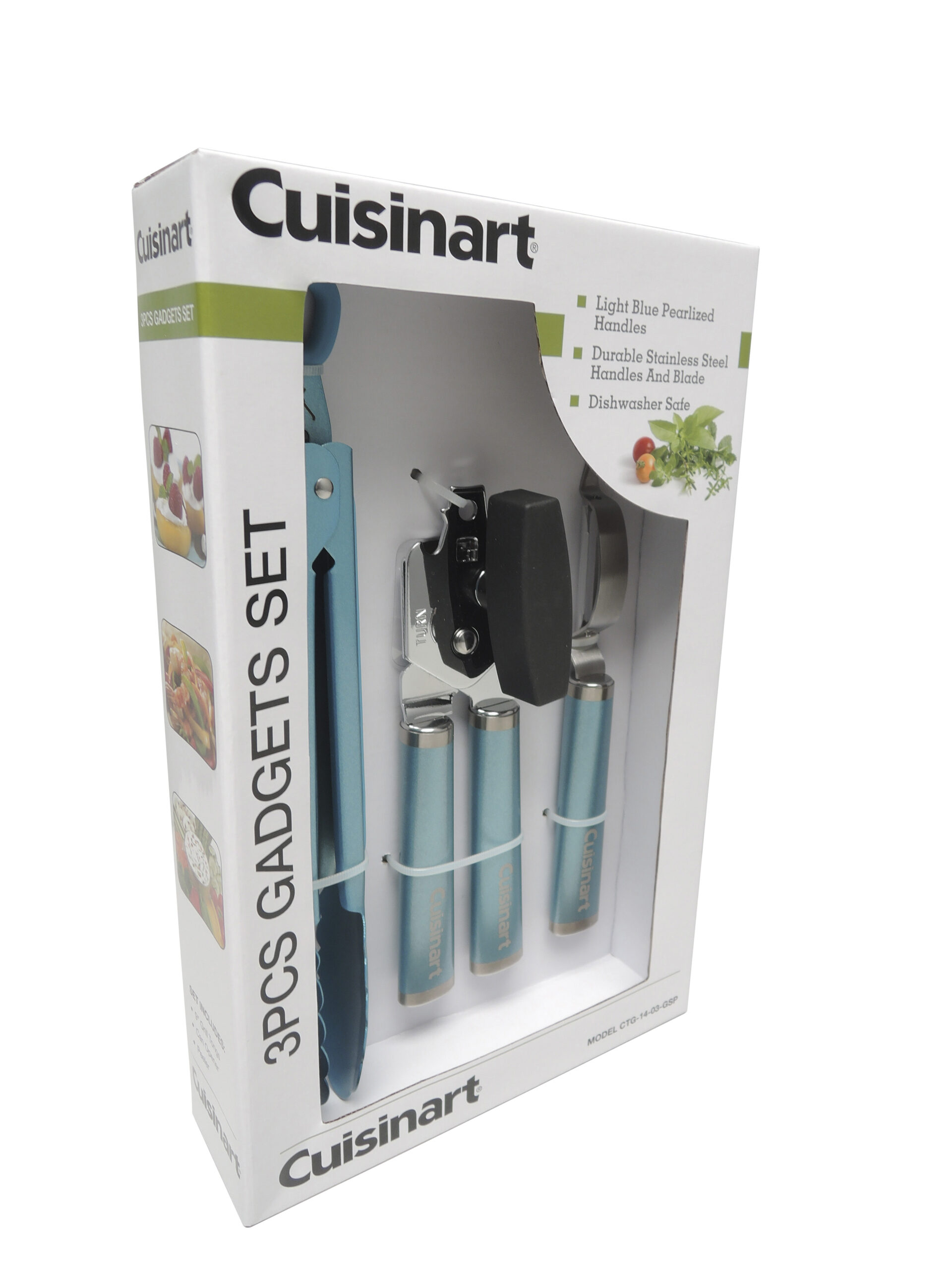 -Set includes: Peeler, Can Opener, 9” Grill Tongs