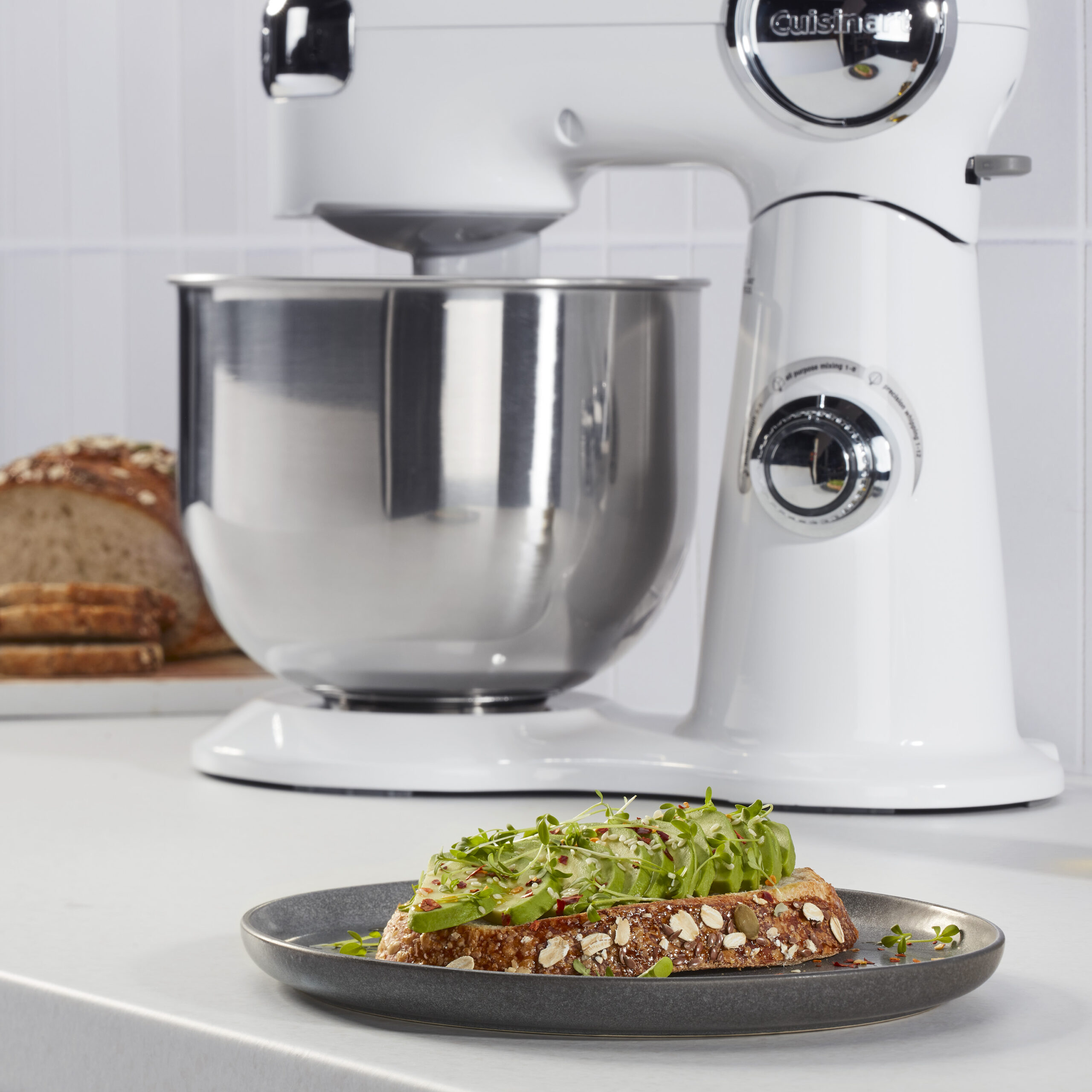 -Accessories included: Chef’s whisk/ flat mixing paddle/ dough hook/ splash guard
