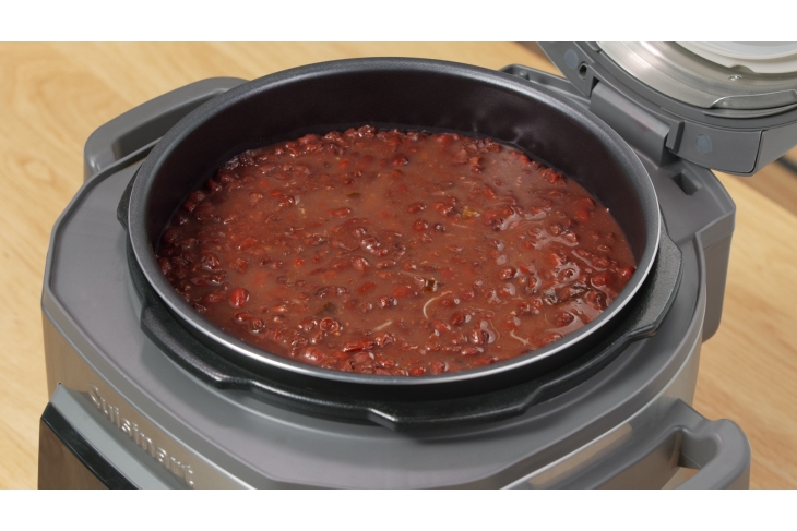 材料: 198克 紅糖 340克 紅豆 28克 百合 57克 蓮子 2瓣陳皮(浸軟、洗淨) 1 1/2 公升水 1/2杯 粟粉水 把所有材料洗凈,陳皮以清水浸軟,備用。 把所有材料放入Cuisinart多功能壓力鍋內。 鎖上上蓋,選擇煲湯/糖水模式,選擇超高+壓力設置,設定時間約30分鐘,按Start(開始)。 當烹調完成,拌勻即可享用。
