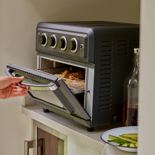 Cuisinart 最新推出的17公升型格健康烤焗爐,體積輕巧,但卻擁有17公升大容量,能讓你同時煮食4-5人份量,適合家庭使用。通過高速熱風對流,能瞬間加熱,做出外酥內軟但少油的食品,口感極致,烹飪時間更比傳統焗爐快 30% 。內置7款預設烹飪模式可供選擇,集焗爐、氣炸鍋、多士爐、燒烤機於一身,一機多用,讓你隨時隨地都能在家享受不同的美食。