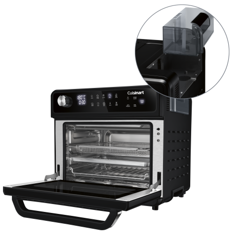 Cuisinart 全新推出多功能氣炸蒸焗爐, 20公升特大容量,集專業蒸、焗、氣炸於一身。 内置十種强大功能模式及二十個預設食譜,配合智能觸控LED 顯示屏,操作簡易,輕鬆上手。特設的雙烹飪模式,可同時對兩種烹飪模式進行組合設定,簡化操作步驟。蒸焗爐更配備多款專業配件,包括烤盤、氣炸鍋籃、烤箱架、碎屑托盤,助你提升烹飪效率,任何時候都能輕鬆煮出特色菜餚。